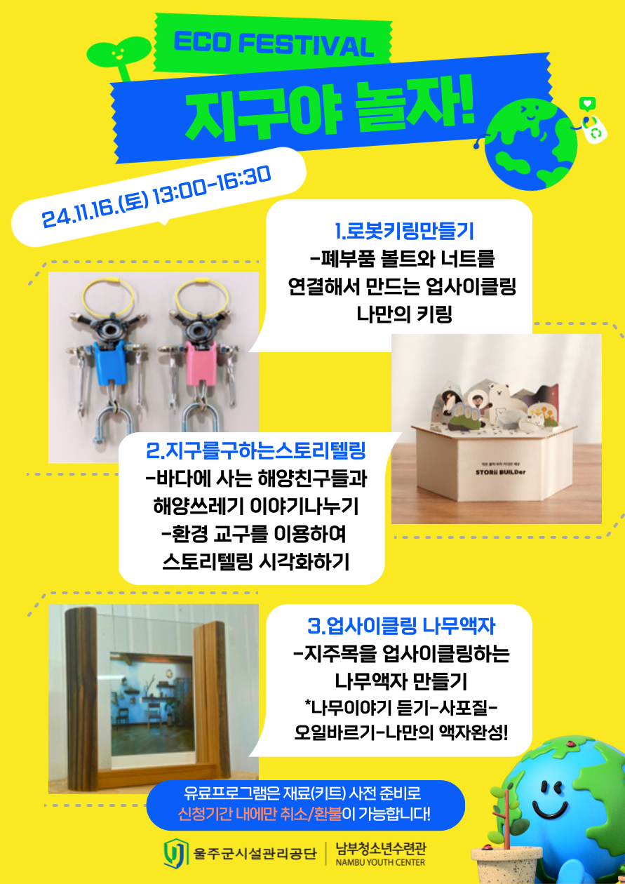 *에코 페스티벌 '지구야 놀자'가 수련관에서 진행됩니다.