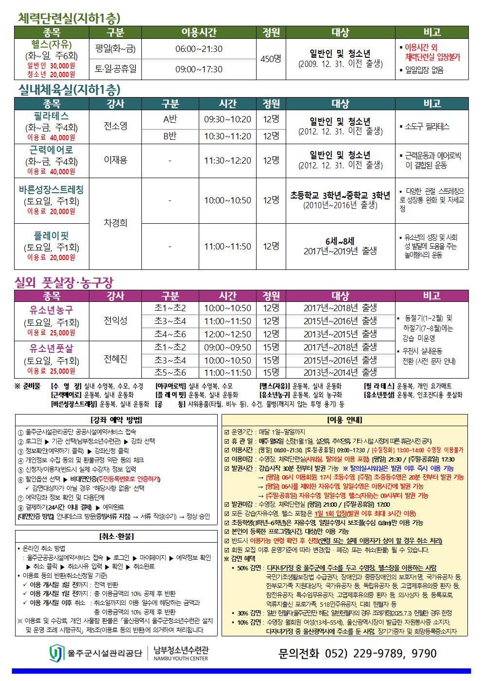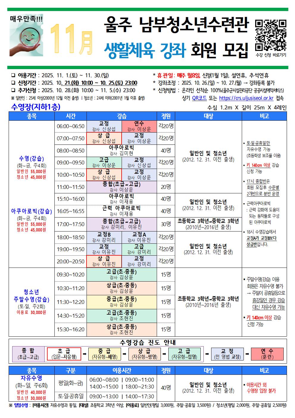 [울주남부청소년수련관 202511월 생활체육 강좌 회원 모집]