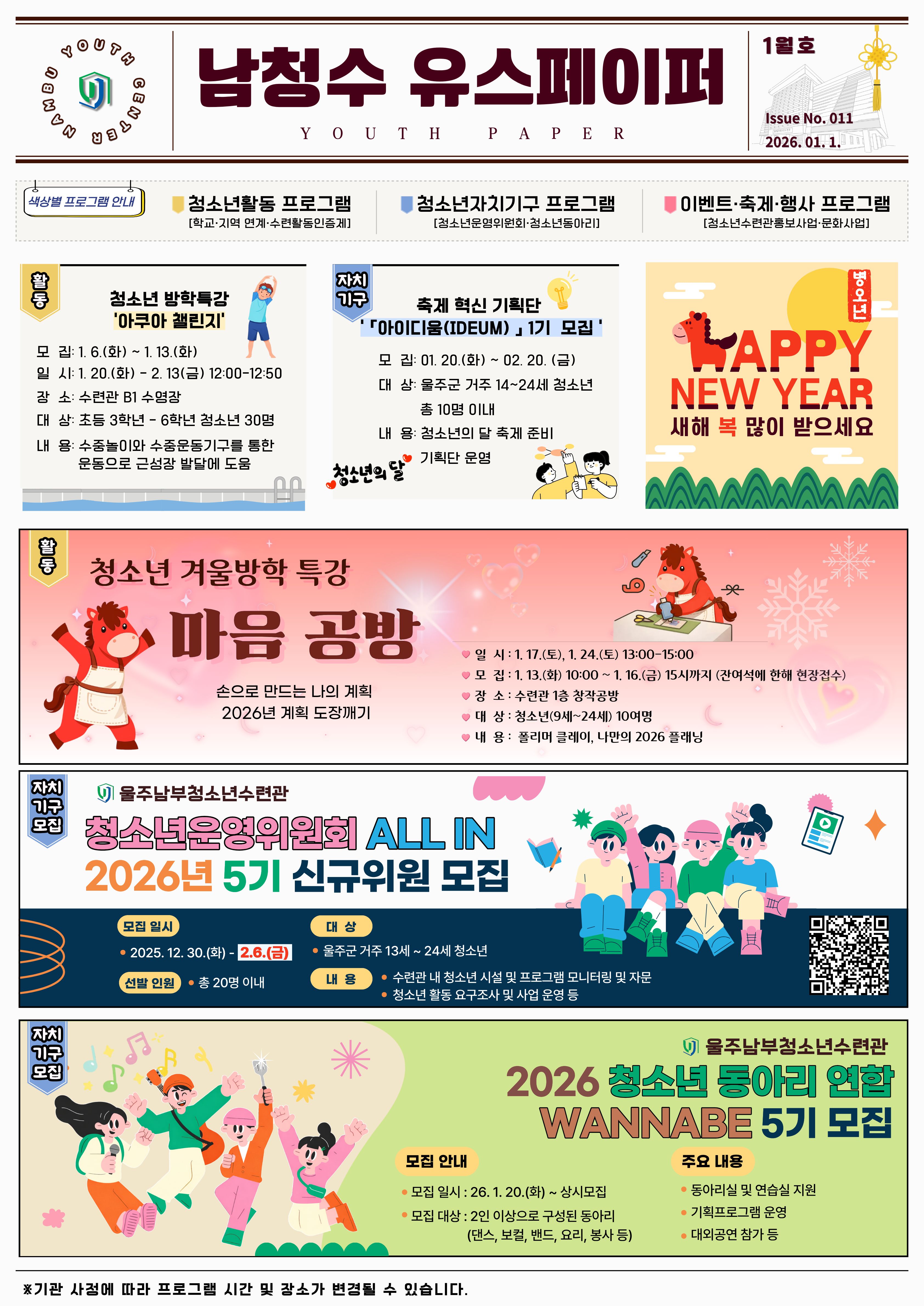 울주남부청소년수련관 1월 청소년 프로그램을 안내드립니다!