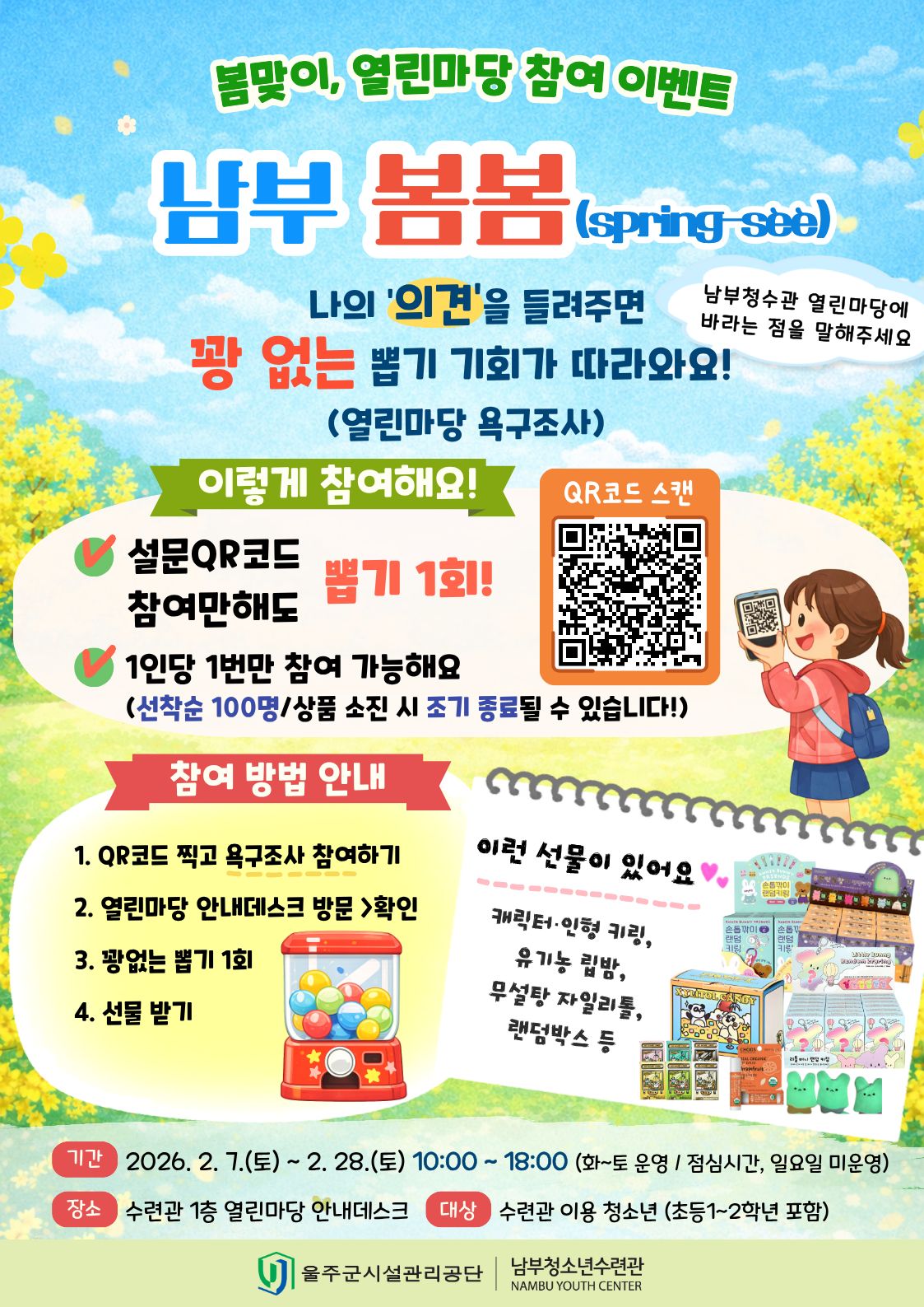 [청소년활동] [이벤트] 봄맞이, 열린마당 참여 이벤트「남부 봄봄(spring-see)」
