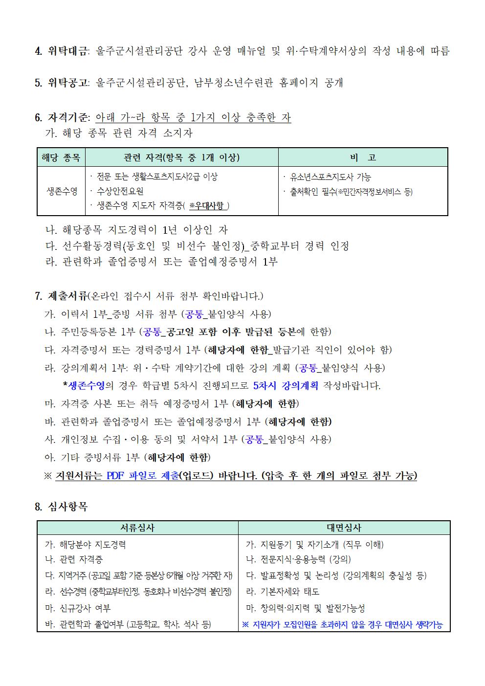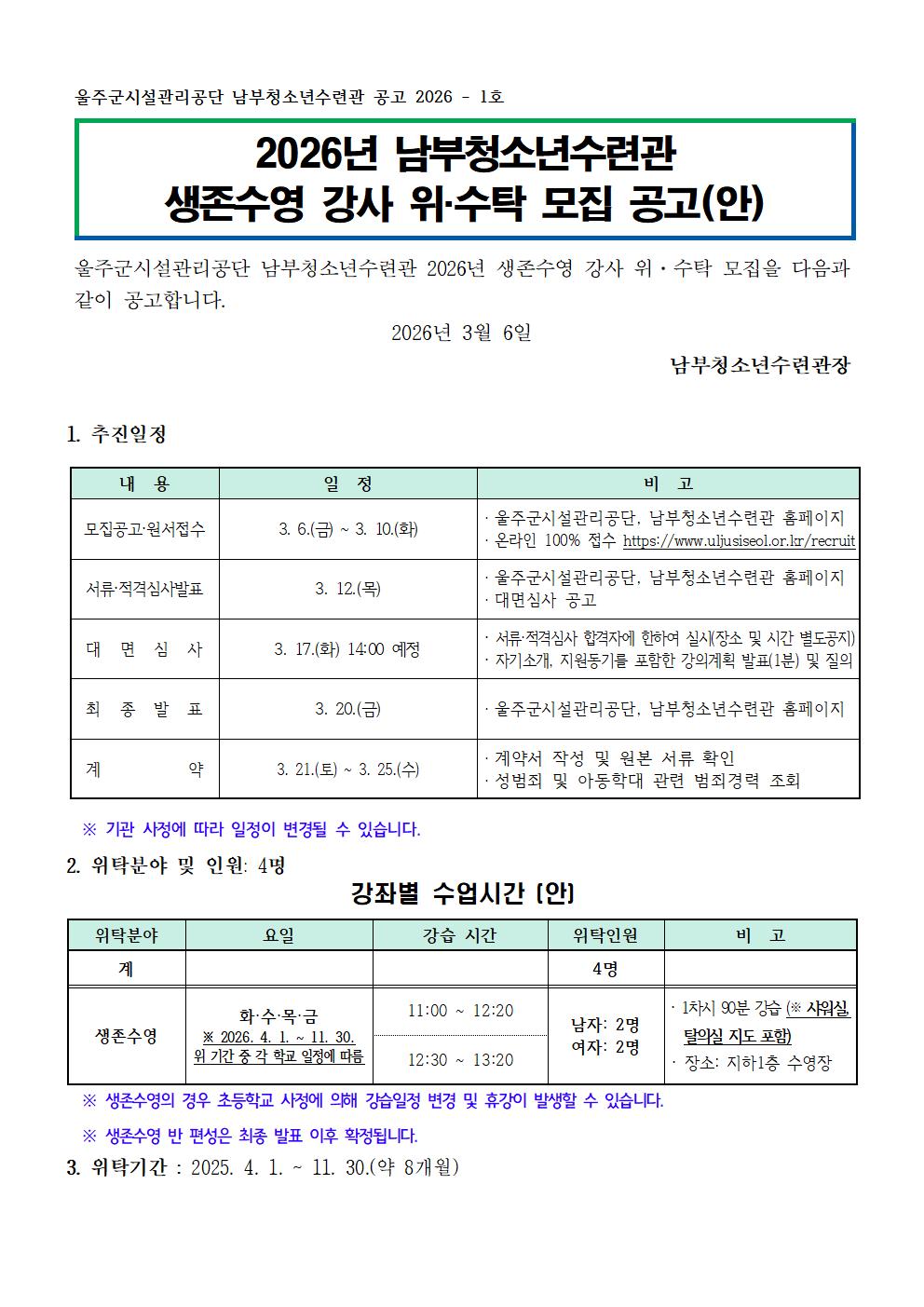 [공지] [남부청소년수련관] 2026년 생존수영 강사 위·수탁 모집 공고