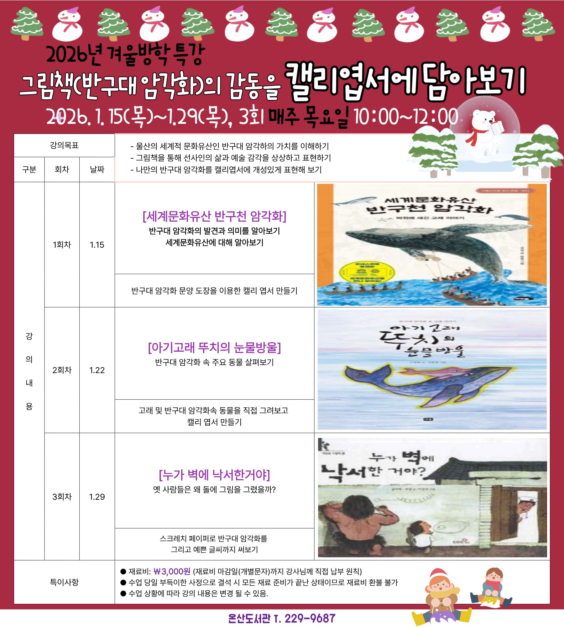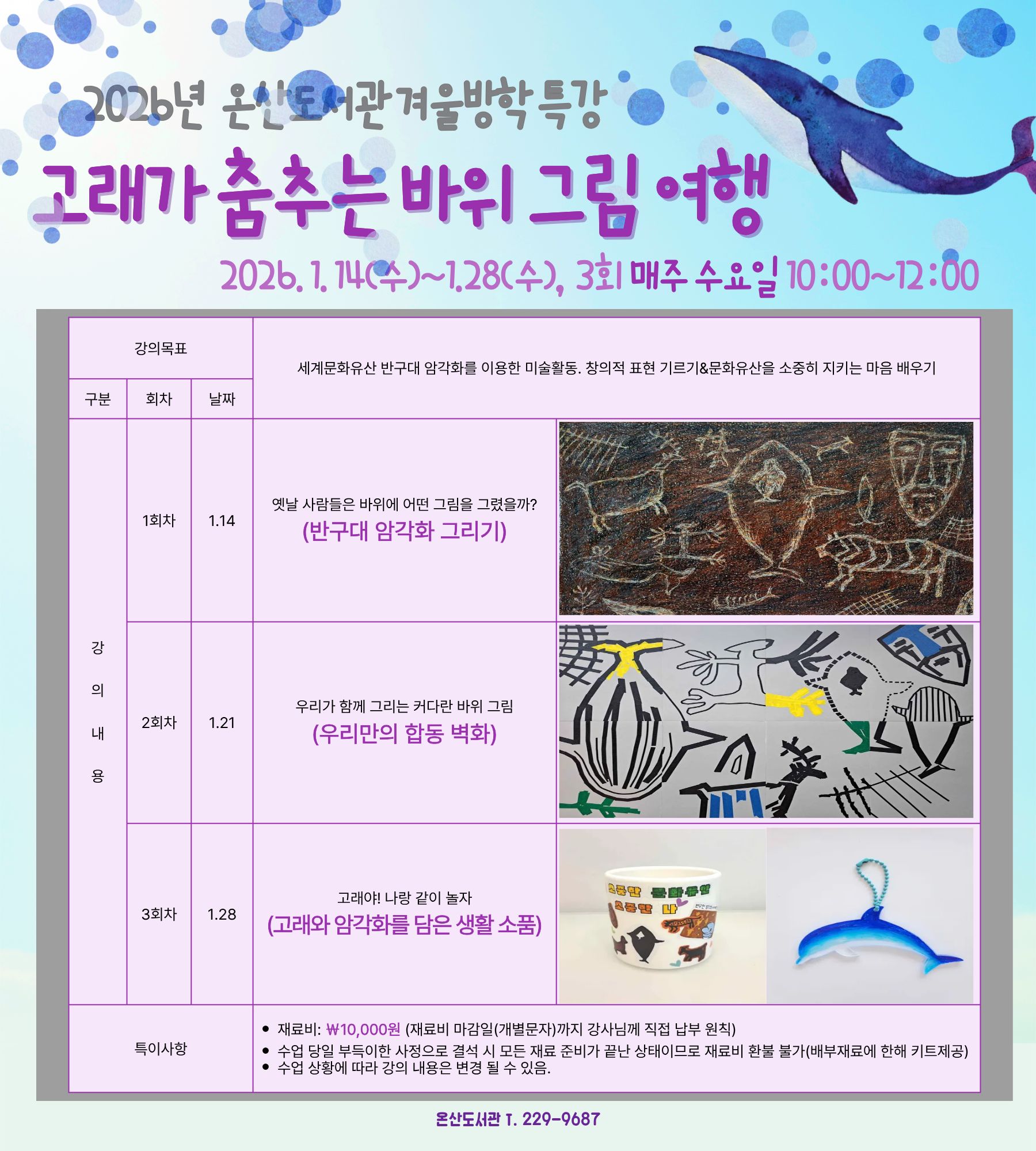 [2026년 온산도서관 겨울방학 특강] 반구대 암각화 온산도서관에 스며들다. 운영 안내