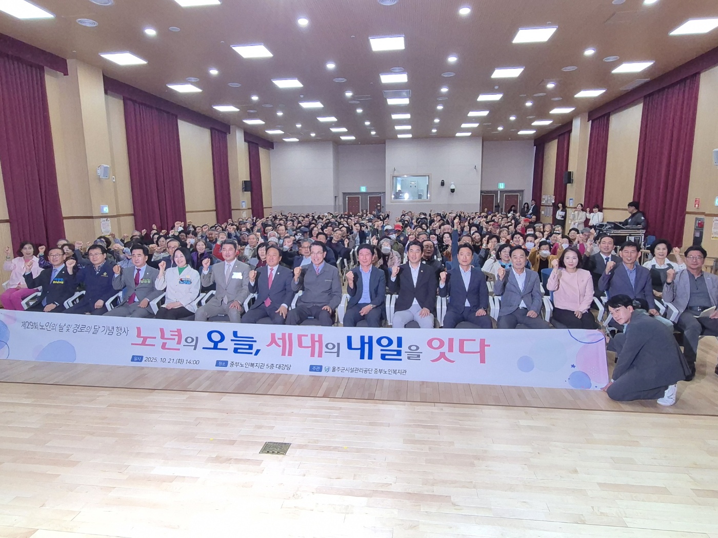 울주군시설관리공단(이사장 최인식) 중부노인복지관은 16일 복지관 대강당에서‘노년의 오늘, 세대의 내일을 잇다’라는 주제로 복지관 회원 및 지역주민 350명이 참석한 가운데 제29회 노인의 날 및 경로의 달 기념행사를 개최했다.