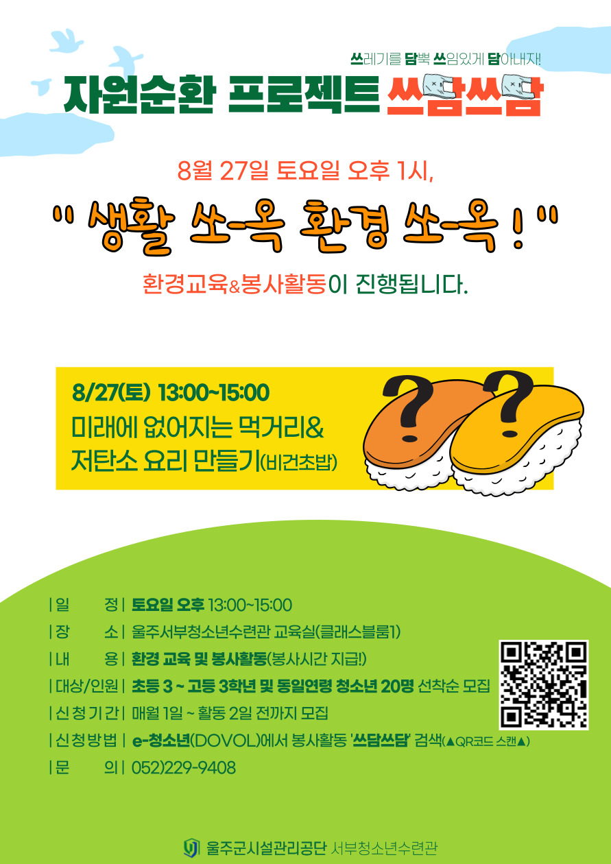 [청소년활동] (청소년환경보호봉사활동) "생활 쏘-옥 환경 쏘-옥!" (8월) 참가자 모집