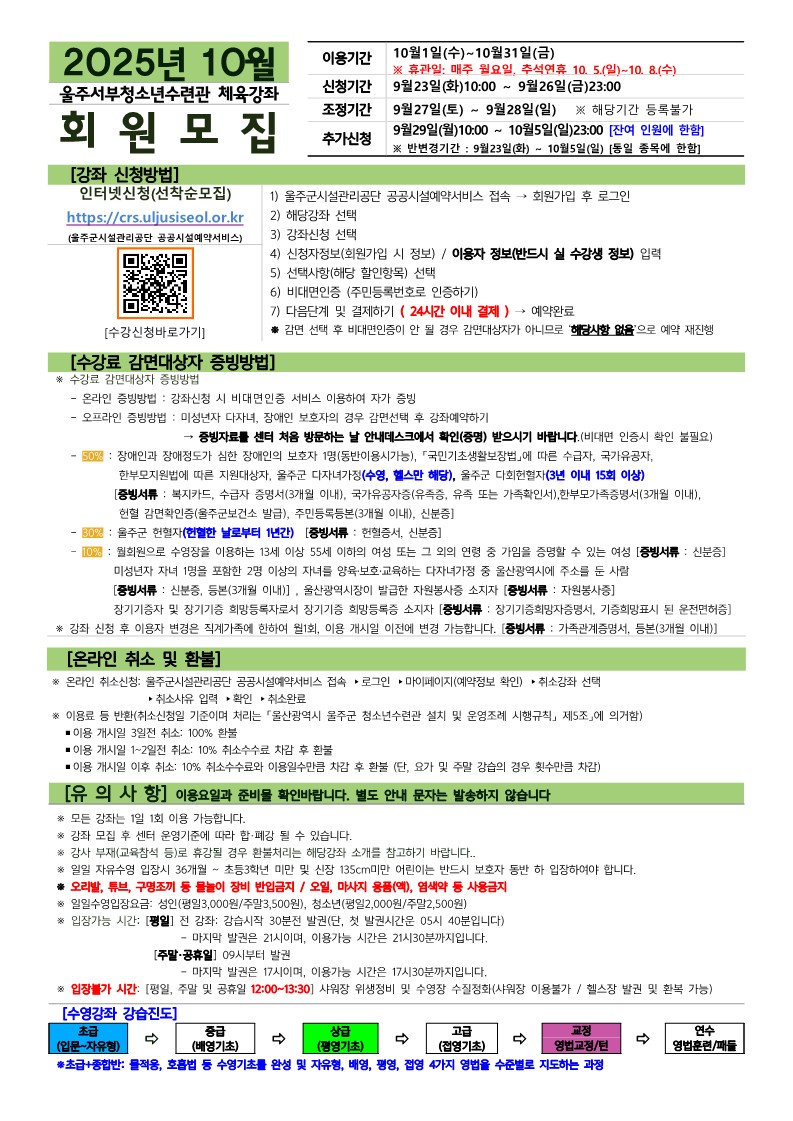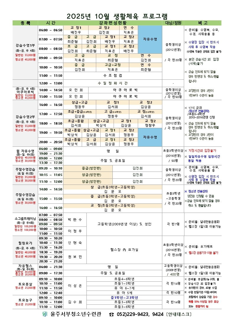[공지] [울주서부청소년수련관] 2025년 10월 생활체육 프로그램 이용안내