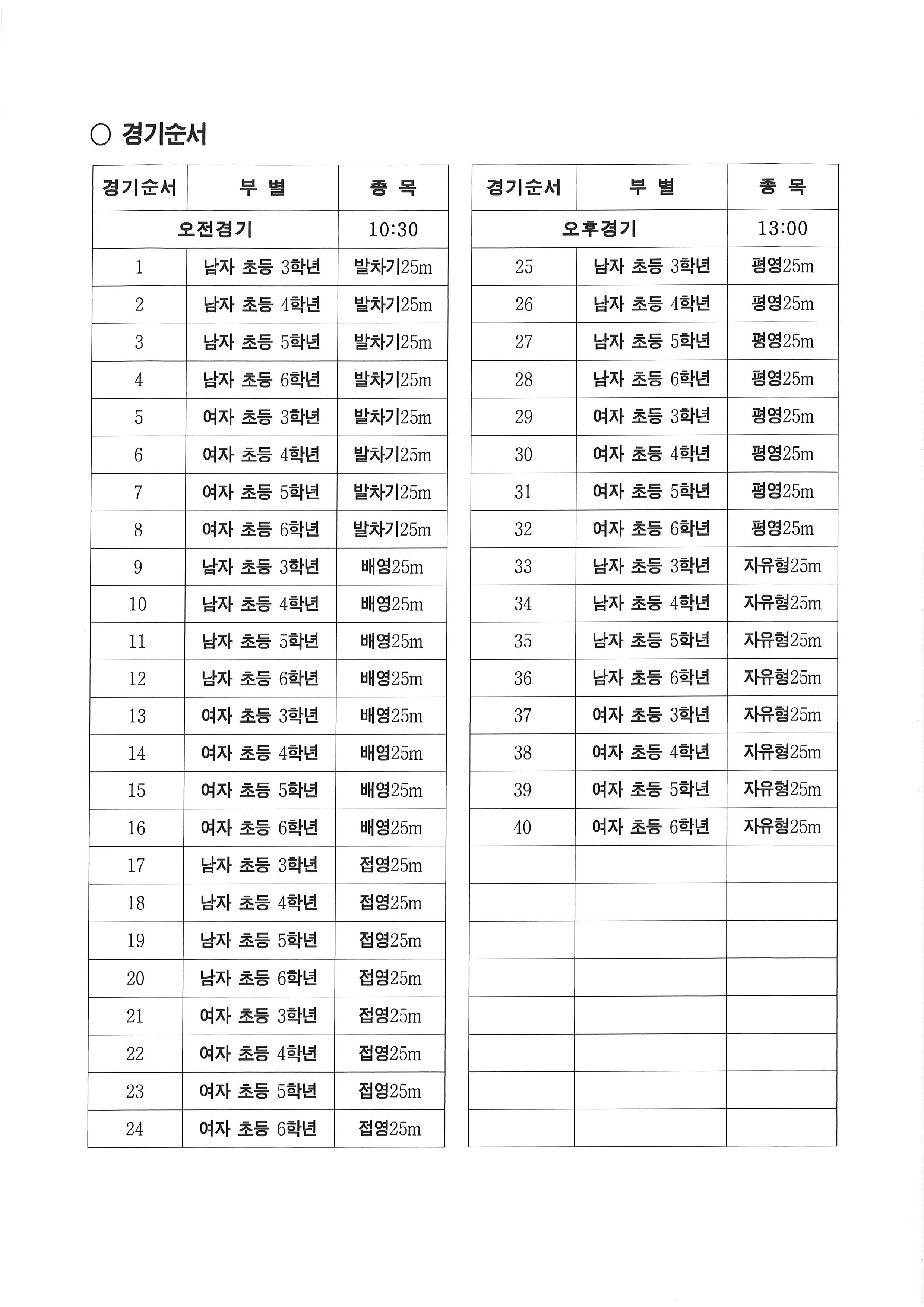 제1회 울주서부청소년수련관장배 청소년 수영대회 대진표(최종).xlsx