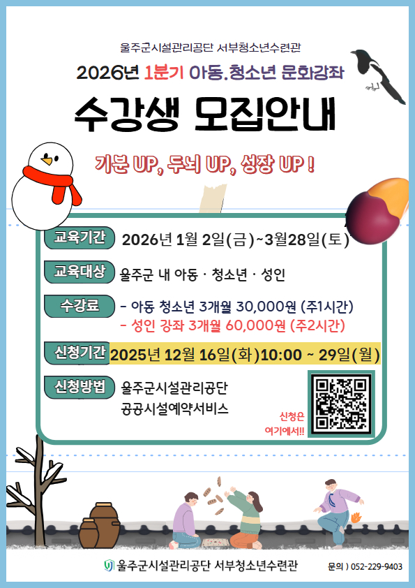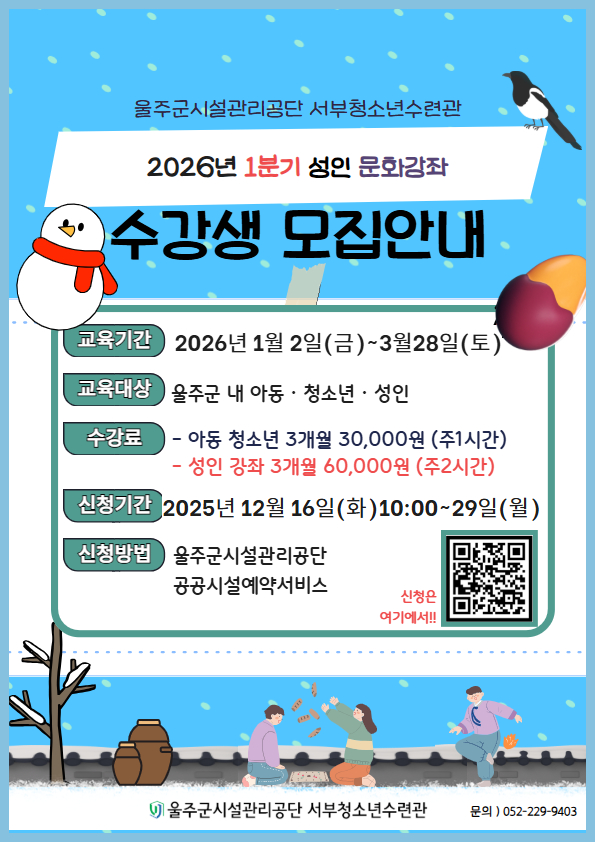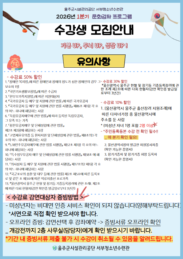 [공지] 2026년 1분기 문화강좌 수강생 모집