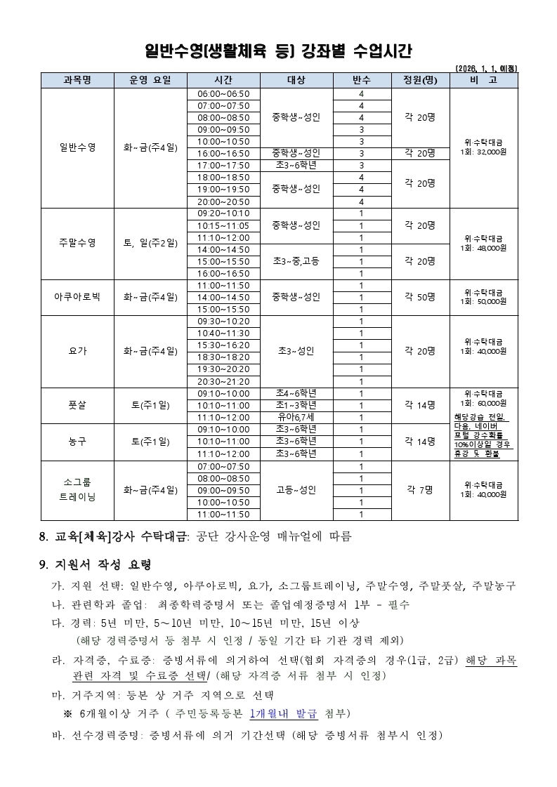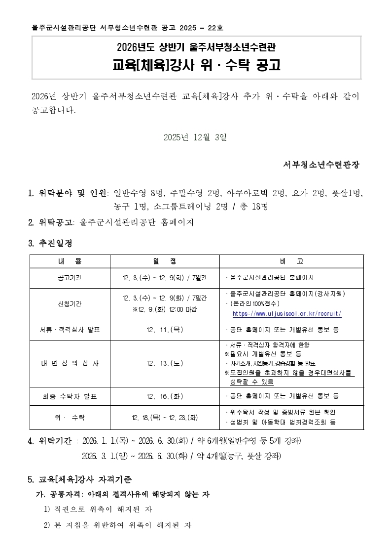 [생활체육] [서부청소년수련관] 2026년 상반기 교육[체육] 강사 위·수탁 공고