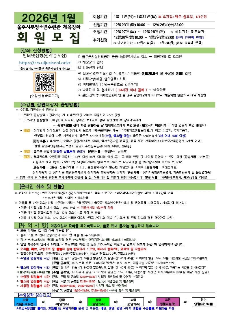 [공지] [울주서부청소년수련관] 2026년 1월 생활체육 프로그램 이용안내