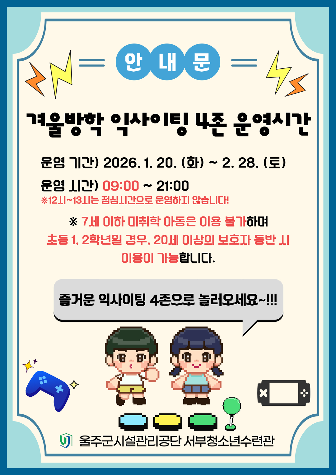 [공지] 겨울방학 열린마당(익사이팅 4존) 운영 시간 안내