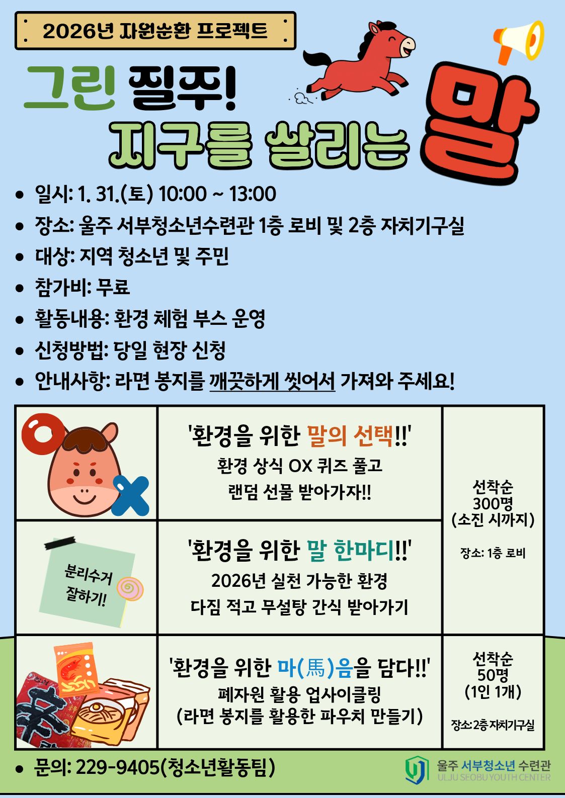 [공지] 자원순환 프로젝트 [그린 질주! 지구를 살리는 말(馬)!] 프로그램 안내