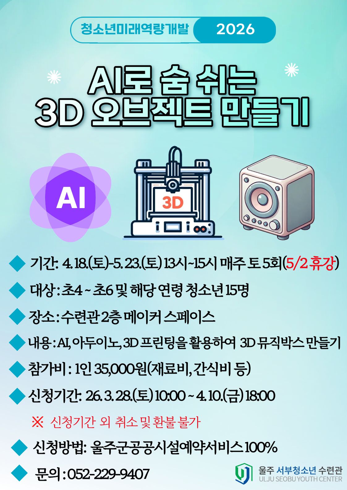 [청소년활동] AI로 숨 쉬는 3D 오브젝트 만들기 참가자 모집!