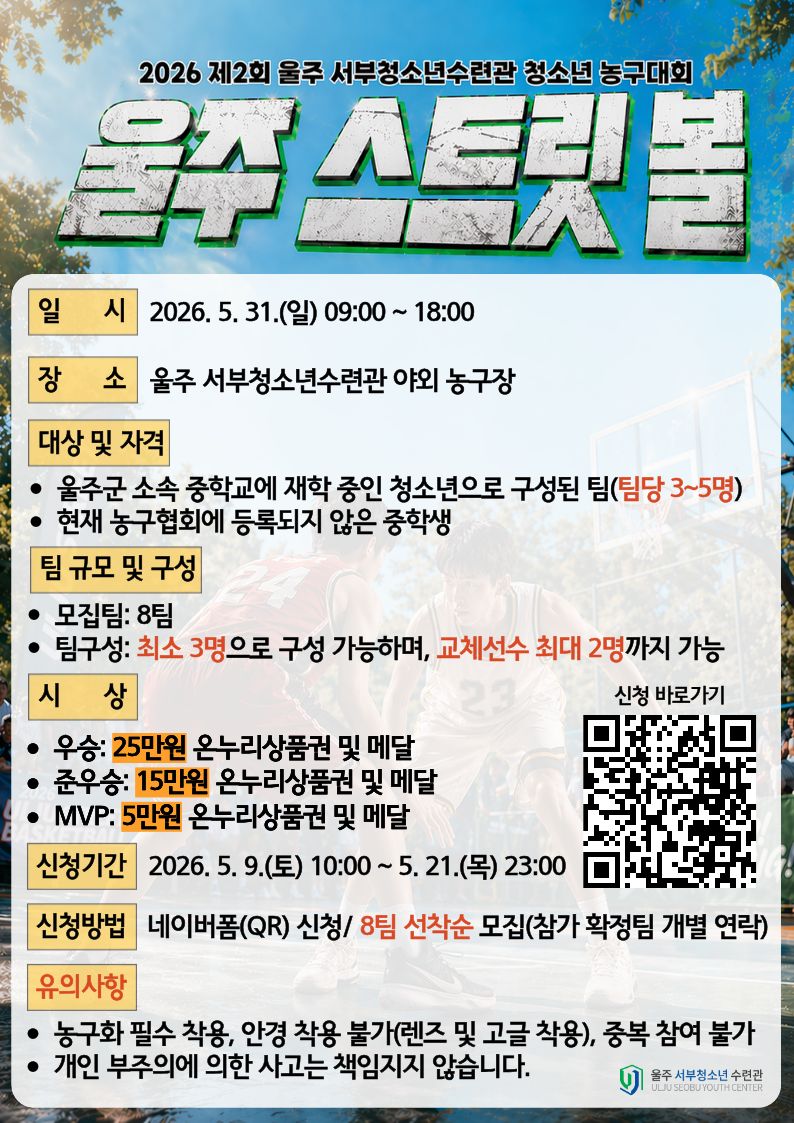 [청소년활동] 청소년 농구대회 [울주 스트릿 볼] 참가자 모집!