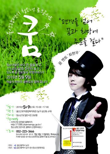 울산시 남구가 주최하고 문수청소년문화의집에서 주관하는 청소년토크콘서트 쿰이 5월 9일 15시부터 17시까지 울산근로자종합복지관에서 열린다.