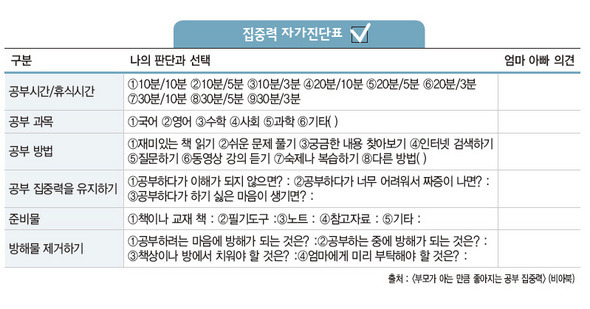 · 짧은 시간이라도 공부에 집중했다면 아낌없이 칭찬한다.