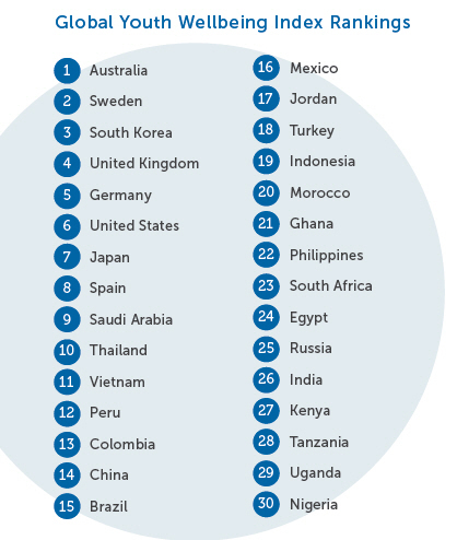 미국 워싱턴 전략국제문제연구소(CSIS)가 국제청소년연합(IYF) 등과 개발한 이 지수에 따르면 한국은 호주와 스웨덴에 이어 30개국 가운데 3위이다. 영국과 독일, 미국, 일본, 스페인의 순위는 한국보다 뒤다.