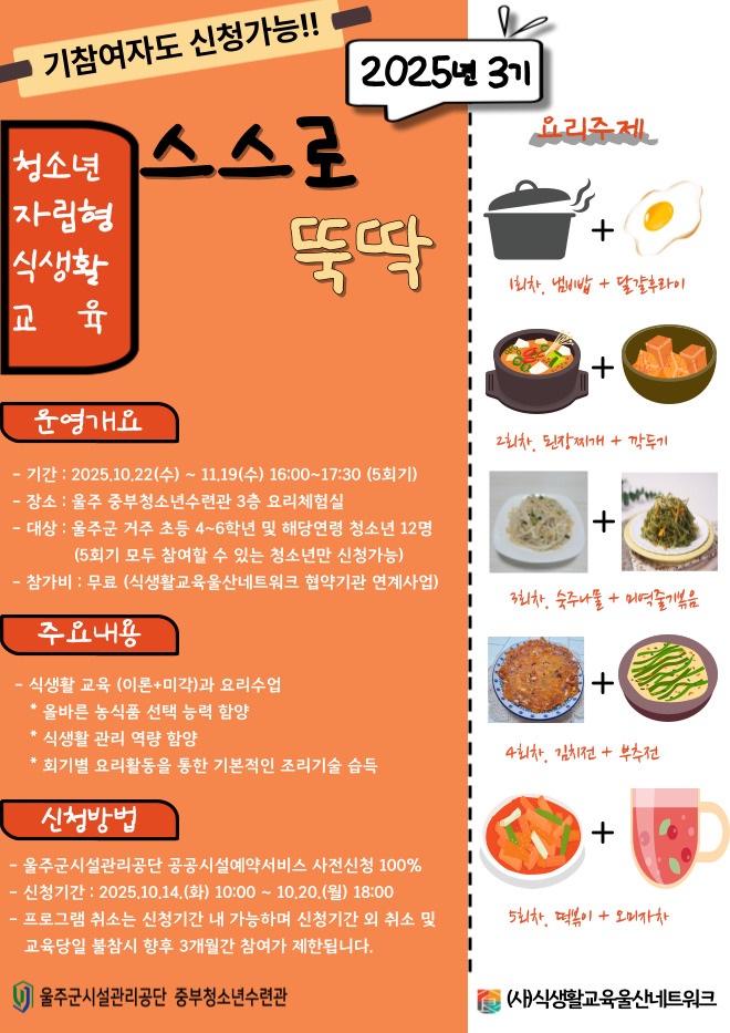 - 참가비 : 무료 (식생활교육울산네트워크 협약기관 연계사업)