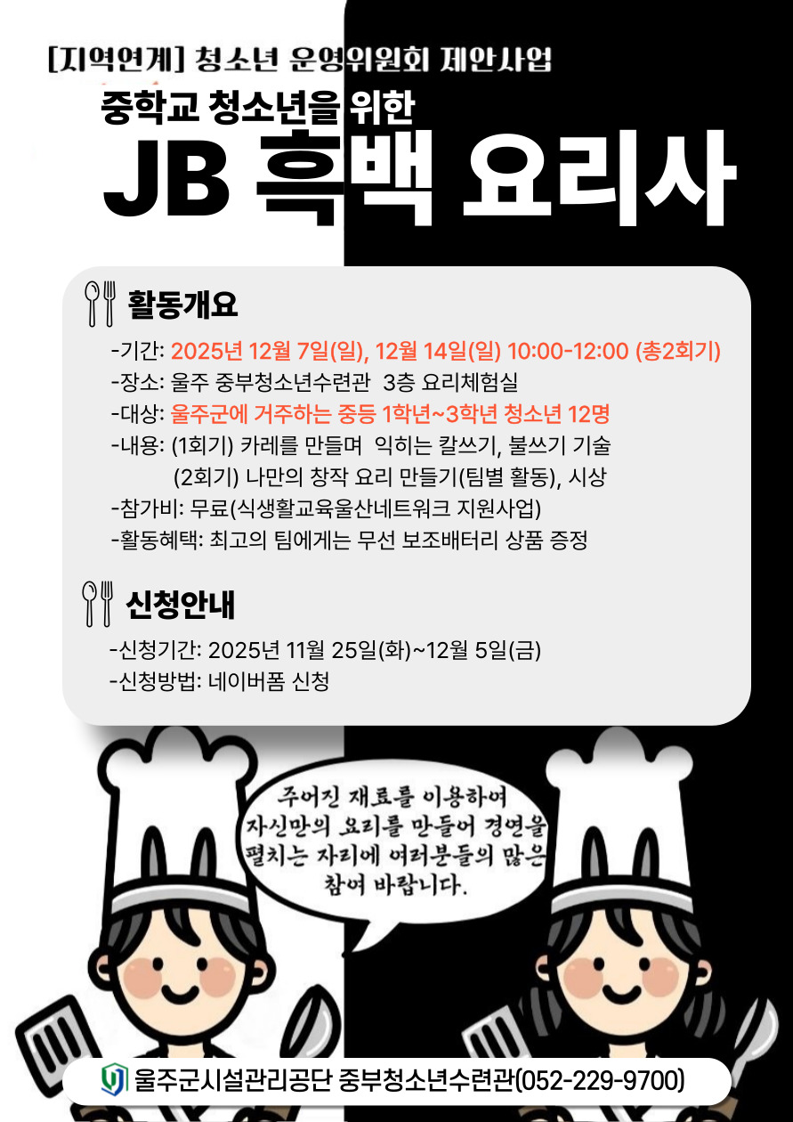 [중등 청소년 프로그램] JB흑백요리사 (12/7-14) 참가자모집N새글