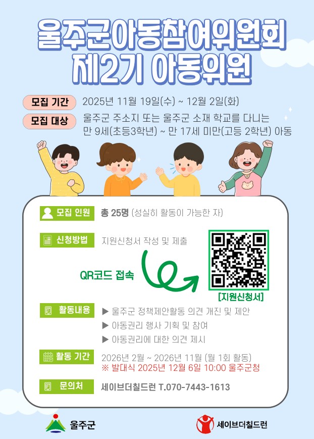 [지역행사홍보] 2025년 울주군아동참여위원회 제2기 아동 위원 모집