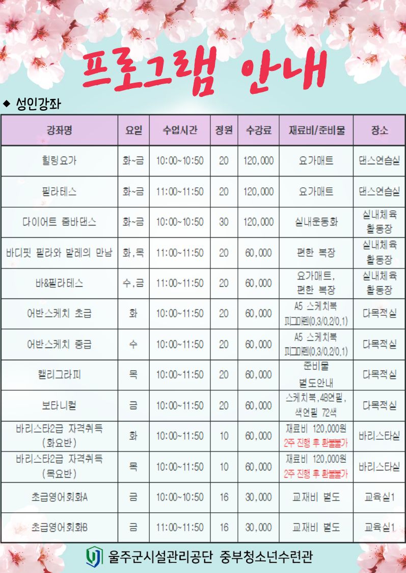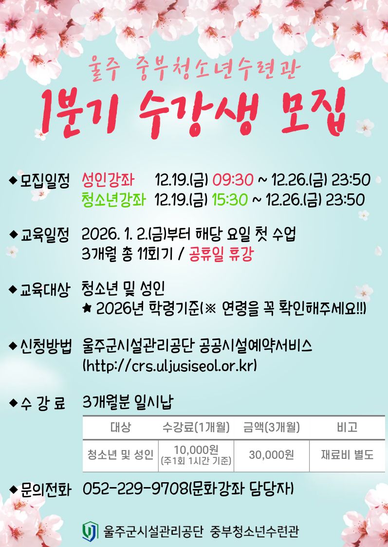 ★2026년 1분기 문화강좌 수강생 모집★