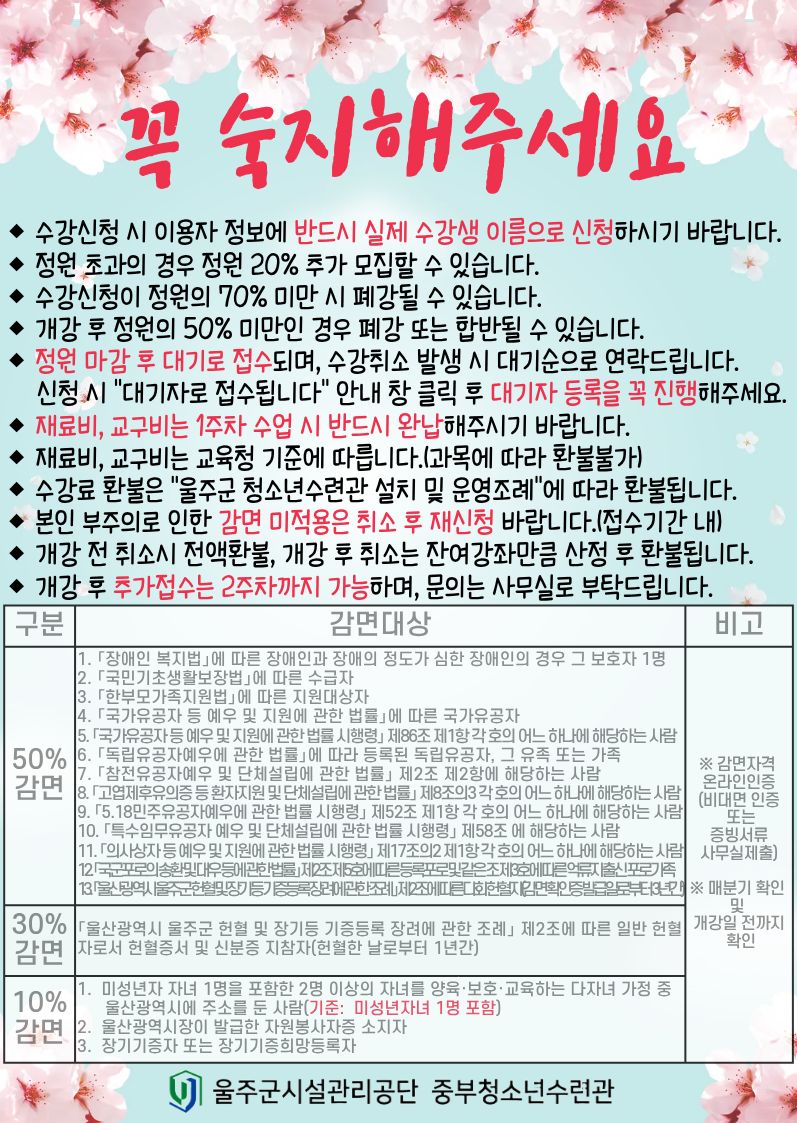 [중부청소년수련관] 2026년 상반기 문화강좌 강사 위수탁 최종 수탁자 공고
