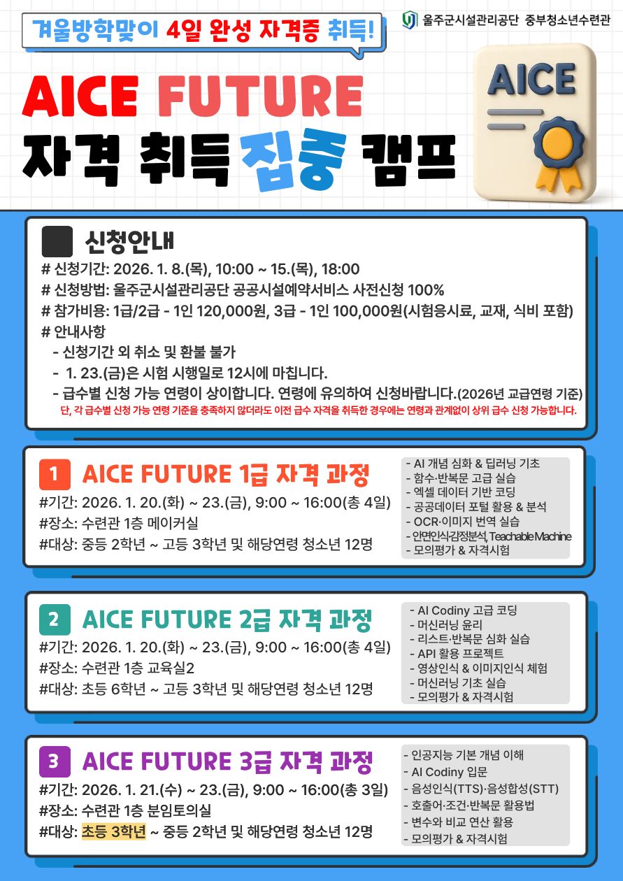 겨울방학 4일완성 [AICE FUTURE 자격 취득 집중 캠프]