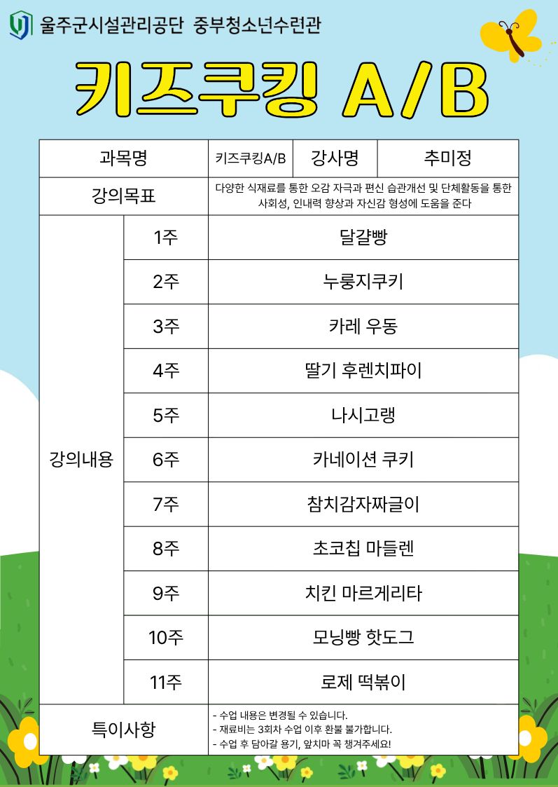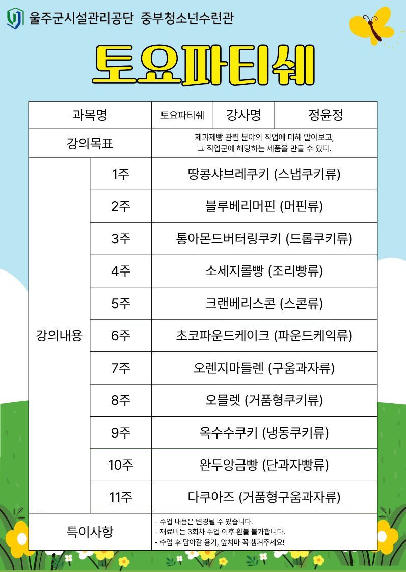 [2분기 문화강좌] 요리수업 강의계획서 공지