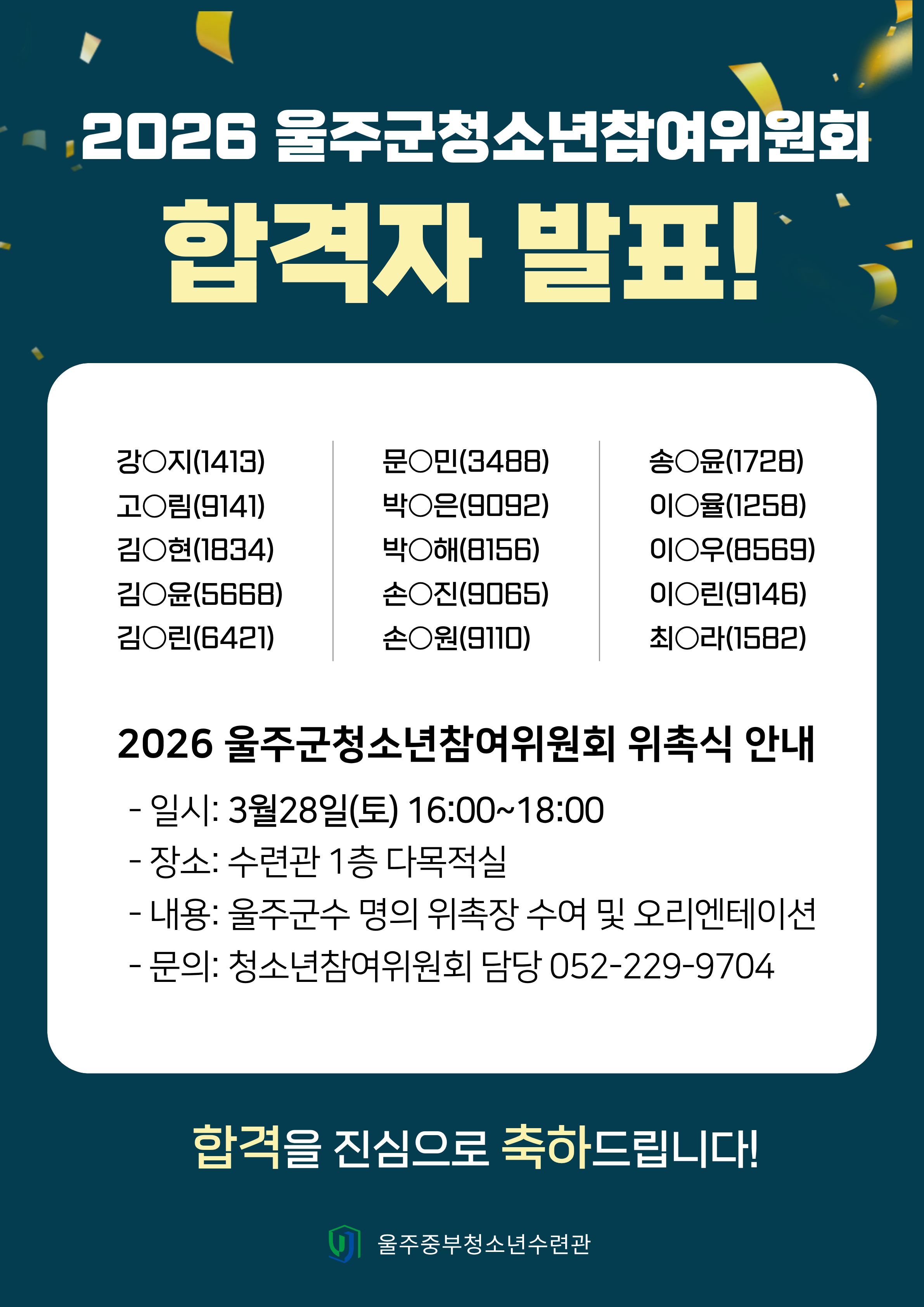 [청참위]2026년 울주군청소년참여위원회 15기 길라잡이 최종합격자 발표