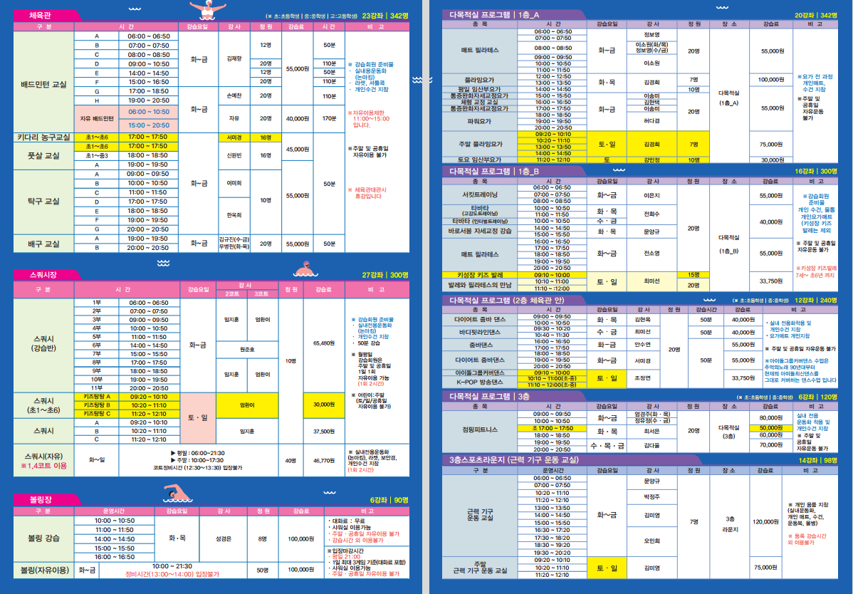 - 생활체육강좌 : 2025. 6. 21.(토) 11:00 ~ 6. 24.(화) 18:00