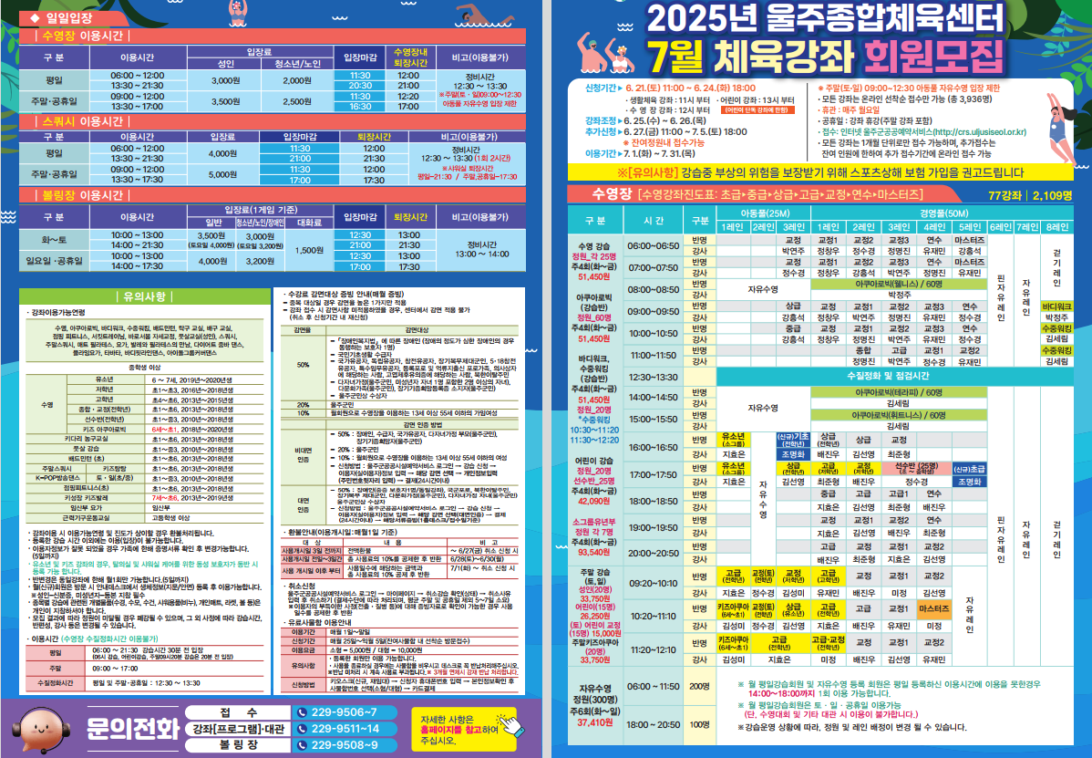 [울주종합체육센터] 2025년 7월 프로그램 회원모집 안내