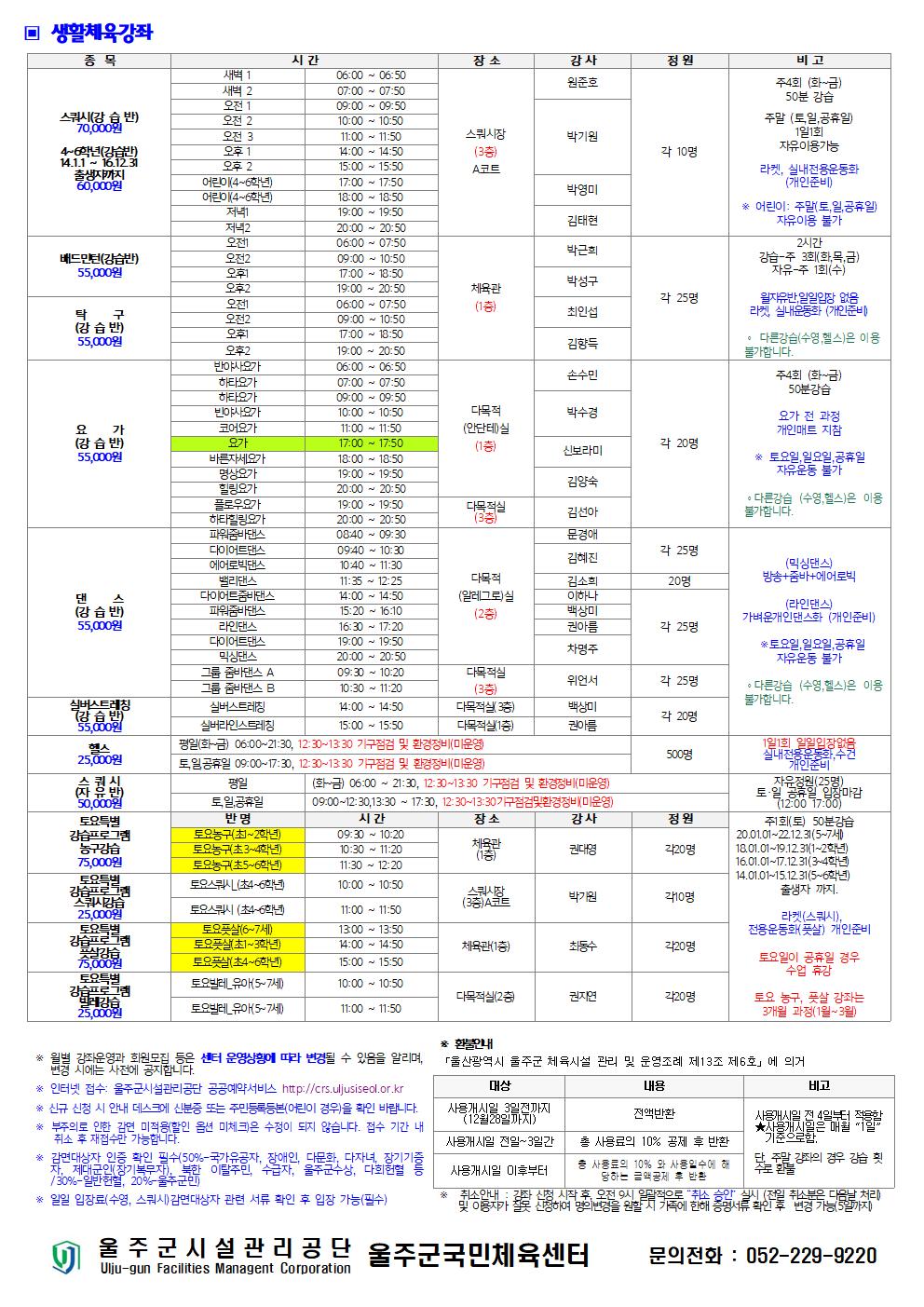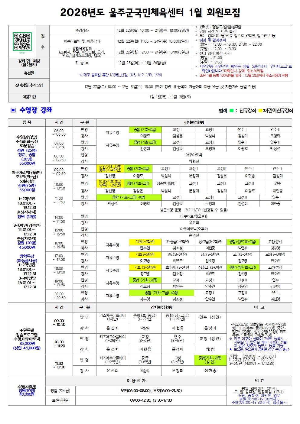 | 제목 | [울주군국민체육센터] 2026년 1월 강좌 회원모집 안내 | ||||