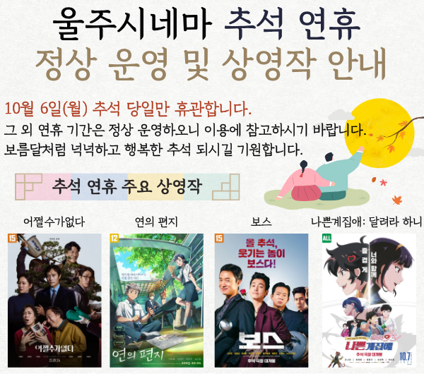 울주시네마 추석 연휴 운영 안내